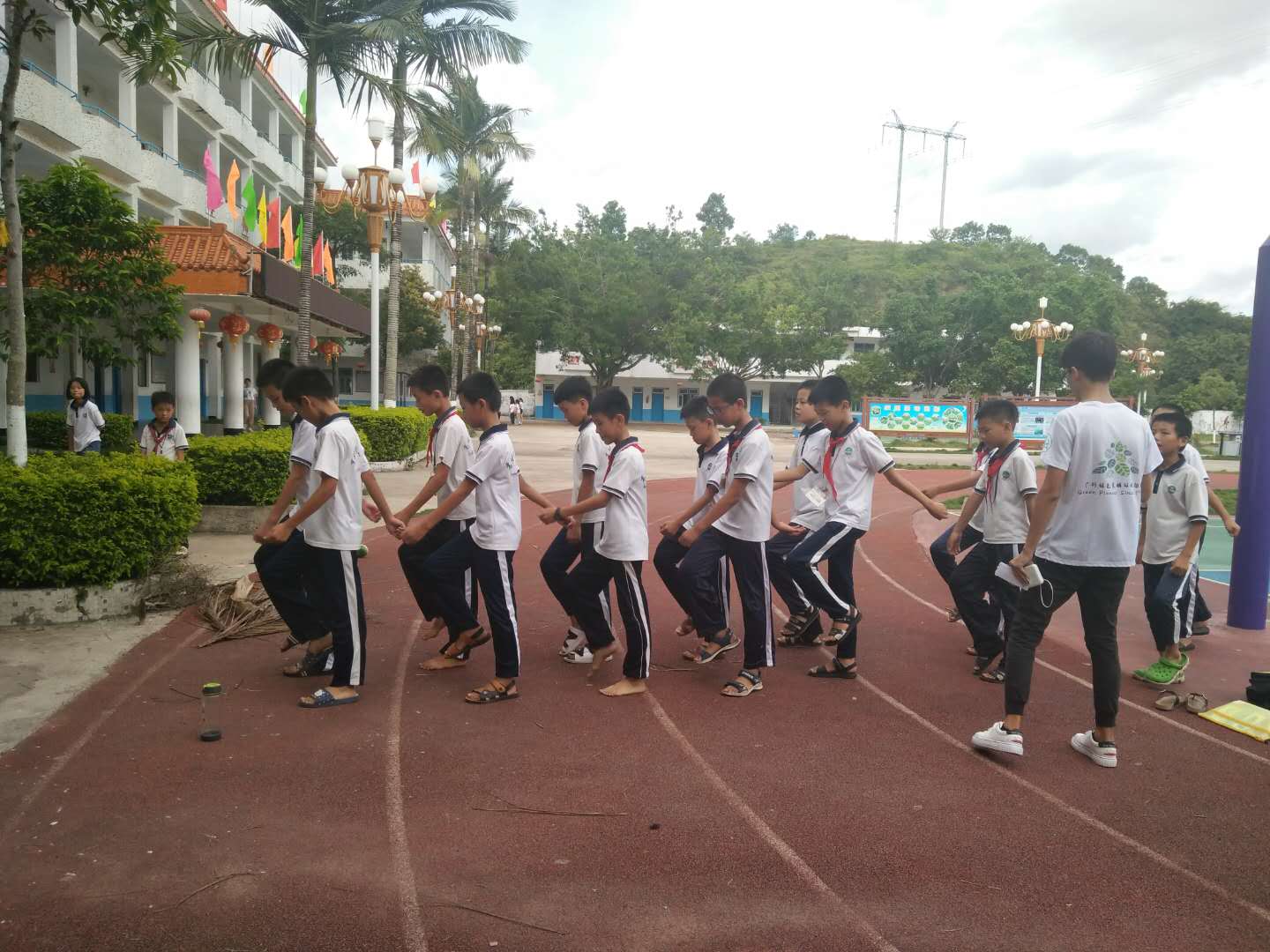 本网讯 2018年7月18日,今天是环协三下乡服务队来到葵坑小学的第四天,工作已经全部步入正轨。不知不觉,七月份已经过半,高埔镇的夏天是热烈的,高温的天气、重复的工作难免会使人有种疲倦的感觉,但是,我们的环协成员学会苦中作乐,在一片炙热中寻找心中的清凉。