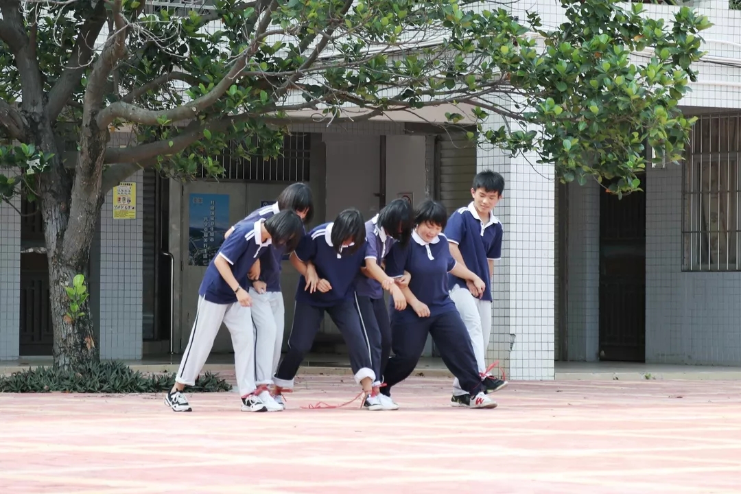 学生们进行六人七足比赛
