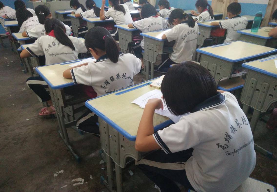 与此同时,调研组组长带领另外无访谈任务的组员进行学生问卷调研,打印、派发、指导填写、回收问卷,每一项都在组员们的默契配合下有条不紊的进行。参加暑期下乡活动的三个年级且今日下午到校的每一位同学都参与了学生问卷的填写。尽管调研组组长提示了这不是考试只是对一些日常行为的简单调查、答案没有对错,但他们还是格外认真的填写了每一个问题。