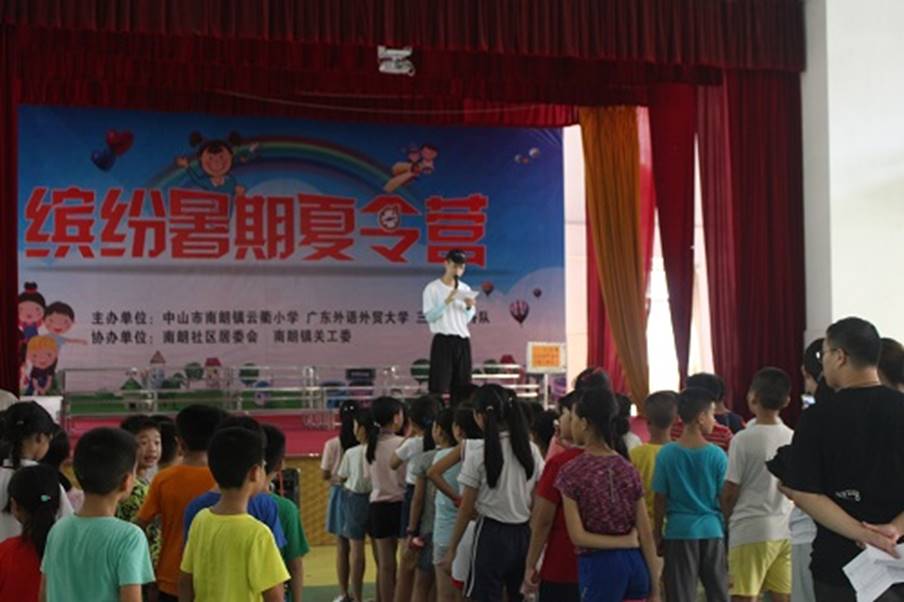 为丰富学生在夏令营的课余生活,激发他们的参与意识、挑战意识,进一步提高学生的身体素质以及团结协作能力,在云衢小学校领导的充分支持及师生们的积极响应下,7月19日下午,由广外“花开盛夏”三下乡服务队牵头筹备的云衢小学暑期夏令营趣味运动会在学校礼堂隆重举行。本次趣味运动会为同学们准备了四个比赛项目,分别是运气球、呼拉圈过山车、接力赛以及螃蟹赛跑。项目的设计旨在使学生强身健体、娱乐身心的同时,培养学生勇敢顽强、超越自我的品质。
