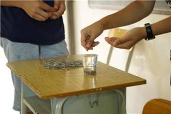 清晨的第一缕阳光照耀在同学们的笑脸上,随之迎来的是生动有趣的物理实验课。老师让同学们在装满水的杯子内投入若干枚回形针,直至杯子内的水溢出。最终,经过多次尝试和老师的亲身示范,同学们发现装满水的杯子内可以投入245枚回形针,而杯子内的水却不会溢出。其依据的原理是杯子装满水,在水的表层会形成张力,用以维持水的形状保持不变。不同于以往单纯讲解知识点的枯燥模式,简单奇妙的实验,在传授同学们知识的同时,提高同学们对物理的兴趣。接下来的生物课同样别有一番风味。老师通过竞答题目的方式鼓动同学们聚精会神听讲,积极发言,培养同学们“打破砂锅问到底”的精神以及思辨能力,多思考为什么并尝试做出回答。秉持着“读史使人明智”的理念,老师在上午最后一堂课上给同学们简单讲解美国历史,包括南北战争、林肯的故事等,同学们全神贯注,认真听讲。