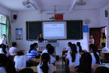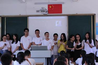 下午的活动安排是欢送会。14点40分,主持人陈鲁斌宣布欢送会正式开始,在进行简洁的开场后文宣组给同学们观看了一个三下乡总结视频,视频开头先是记录了小朋友们对情之程的真心话,向全体队员表示了诚挚的感谢和祝福,有些同学在视频中向义教组的老师剖白心迹,有些同学讲述了在短短十天的上课过程中的所学所得……之后的视频中采取快问快答的方式采访了一些情之程的队员,他们分别说了最想吐槽、最甜蜜的事和最想对小朋友们说的话。视频的结尾是十天以来所拍摄的照片大合集以及对同学们的祝福,视频播放过程中气氛热烈,充满欢声笑语。