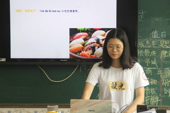 一个寿司的品尝视频将同学们都带进了日本文化的世界。教授这这门课程的“凝光”义教组组员张羡表示,希望能够通过介绍寿司的起源、吃法以及种类,让同学们感受日本文化并学习日常口语。