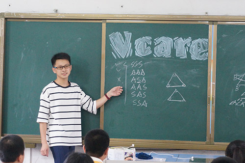 本网讯 2018年7月19日星期四,广东外语外贸大学Vcare三下乡服务队在古梅第一中学初一(1)班教室开始了第五天的义教活动。