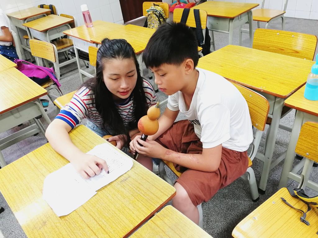 不同于大多数队伍的走出大学城下乡支教,方舟起航服务队选择到大学城内的穗石小学支教,并开展如乐器吹奏、乐理、舞蹈等多种特色课程。“大学生们都离开大学城出去支教,我觉得大学城里的小朋友假期也需要陪伴。”——队伍指导老师韩老师的解释令人深以为然。