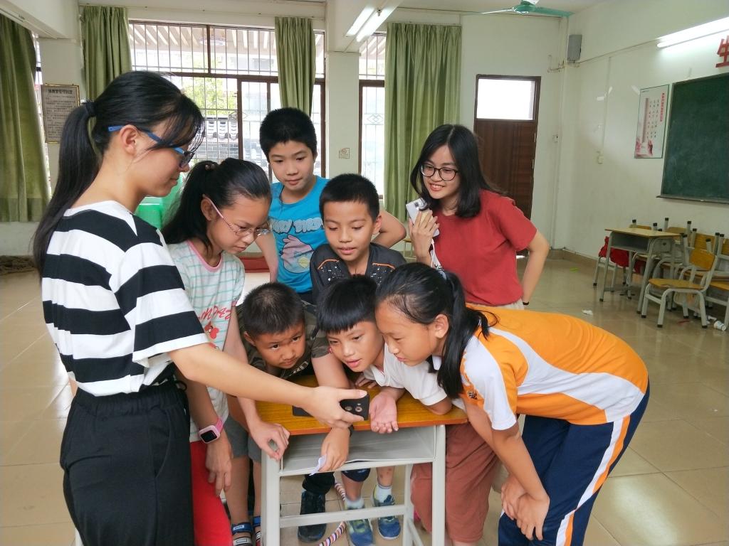 导语:7月24日是爱飞翔方舟起航服务队在穗石小学开展义教活动的第七天。经过了一个星期,服务队中各个组的活动开展都进入了白热化阶段。孩子们的纪律性提高了许多,也更愿意与老师交流自己的想法。