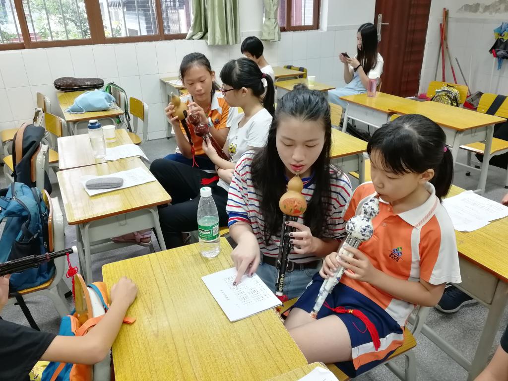 宋晓漫老师指导孩子们练习葫芦丝