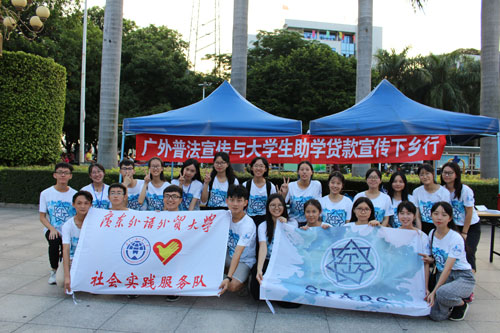 为了贯彻学校关于助贷下乡行的宣传,为了提高群众的法律意识和维权意识,在广东省揭阳市揭东区司法局普法办协助下,广东外语外贸大学法学自强社Stars三下乡服务队成功举办“广外普法宣传与助学贷款宣传下乡行”活动,并得到广大群众热烈好评。
