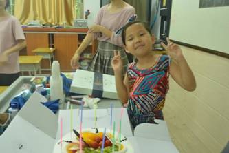 今天下午虽然阴云密布,也有倾盆大雨,但是恶劣的天气还是没有影响到二班孩子们开心的心情。因为班上有一位小朋友过生日,家长送来了蛋糕,让孩子们和老师们一起分享生日的喜悦。二班班上洋溢着欢乐的气息,蛋糕上诱人的巧克力标着“好好学习,天天向上”是给寿星最好的生日祝福,寿星在大家的祝福下吹了蜡烛,带着喜悦分享了好吃的蛋糕。喜悦的气氛也引来了其他老师和同学的关注,大家都给予寿星最好的祝福。分享让寿星的生日喜悦加倍,也让大家都有愉快的心情。