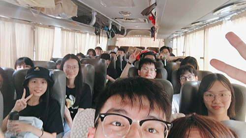 天气晴朗,一路风景美好,经过4个多小时的奔波,队员们终于抵达潮州城基实验中学,陆续把行李搬运下车,有序地走进美丽的城基实验中学,并入住宿舍。