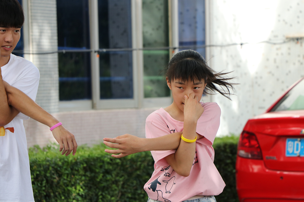 自见面会了解到学生们的体育爱好后,文宣组特此设计竞速相关的趣味性活动,让每个组在起点处等候,快速跑至另一标记地点原地转五圈,然后尽全力跑向原起点。身轻如燕的学生们奔跑在操场中,疾速前行的时光在载懽载笑中显得更加短暂。