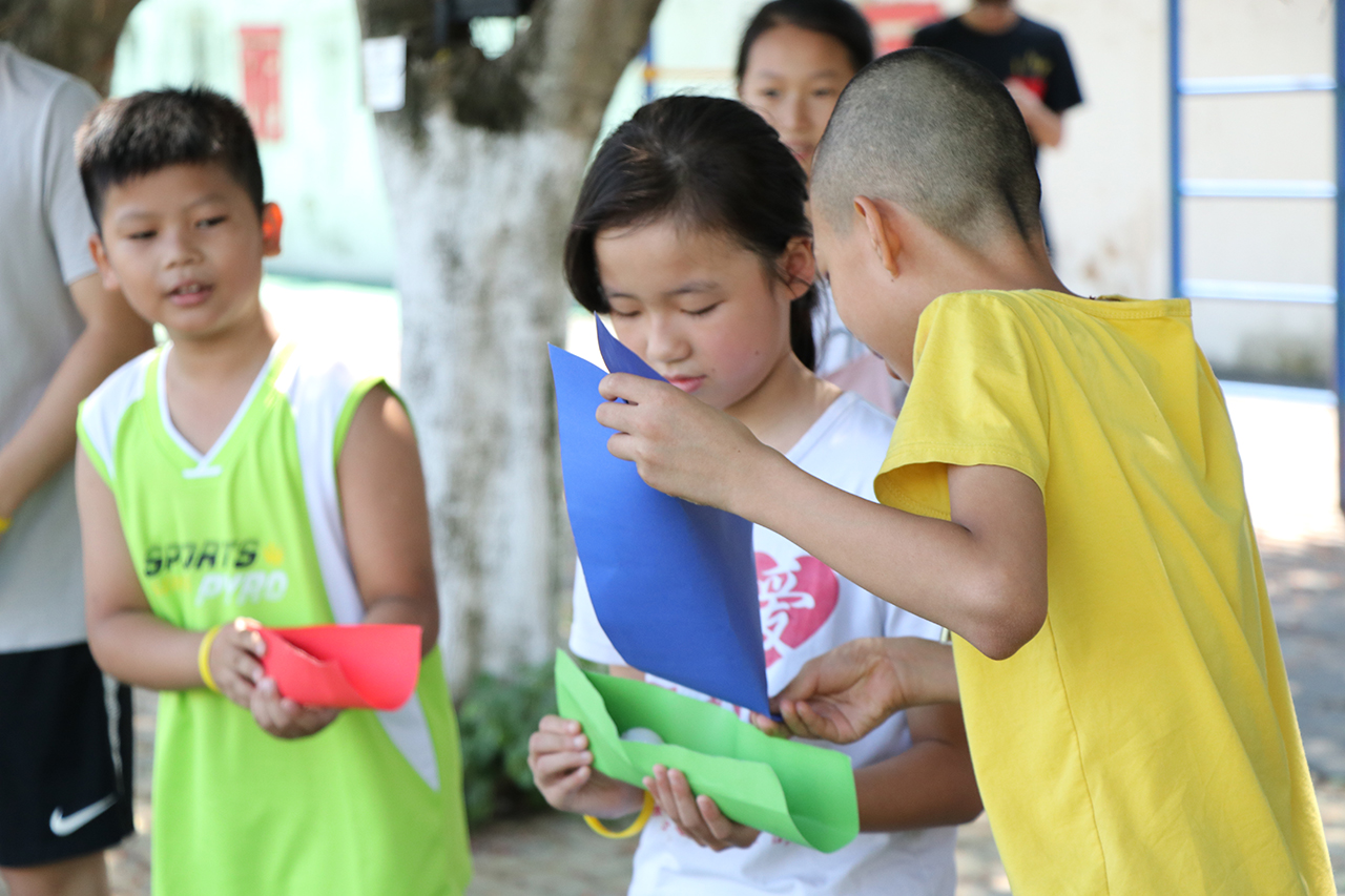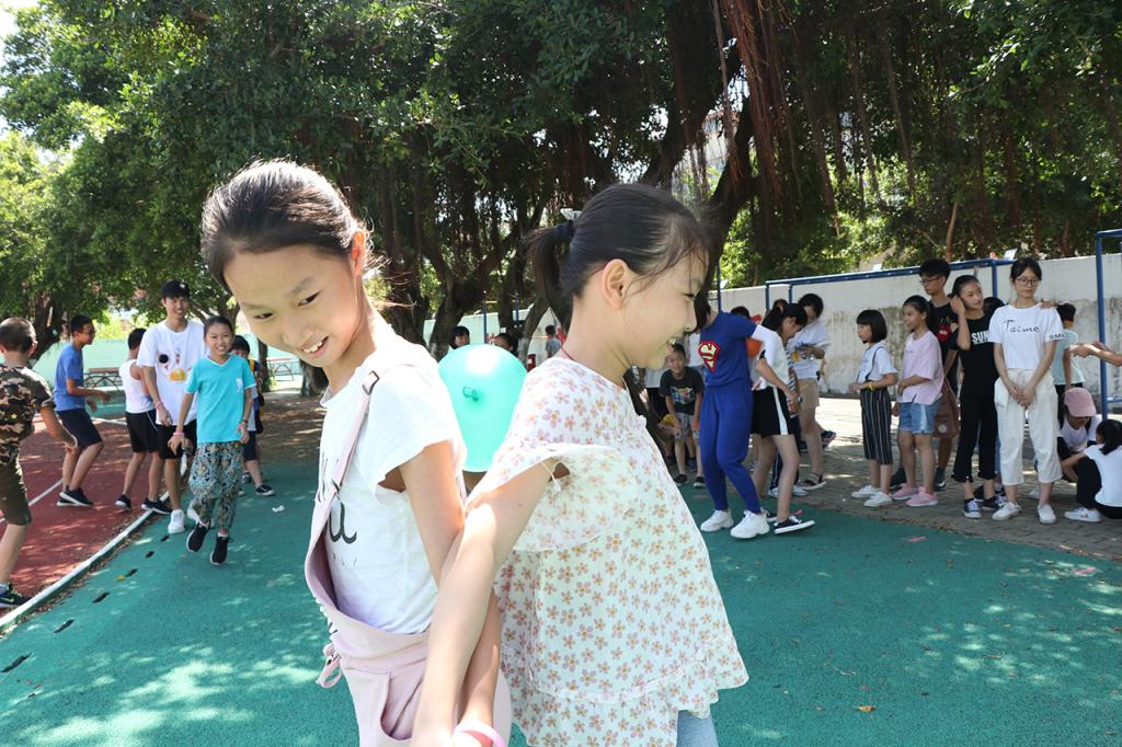 趣味运动会当天,正临台风季节的汕头市幸而风朗气清,学生们根据分组名单前往操场。在此之前,堇熙三下乡服务队队员已经在操场上划分游戏区域、摆放桌椅以及游戏道具,学生们以六人小组的形式参与各项趣味活动,每个小组都配有两名导师,旨在充分给予每一位学生竞技性、趣味性及观赏性相结合的特别感受,进一步培养学生的团队精神与协作能力,增进大家的感情。