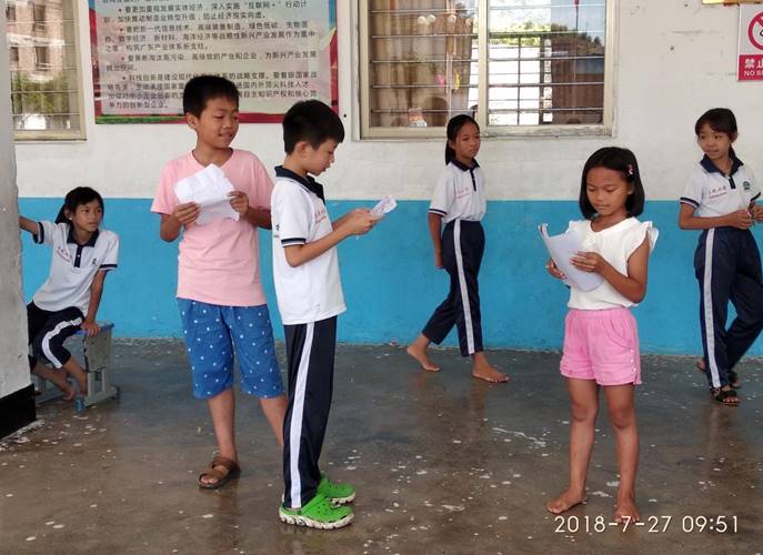 本网讯 2018年7月27日。距离三下乡结束只剩下一天了。两周,不长不短,但是我们与葵坑小学的小朋友们一起经历了很多事情。今天,我们的主要工作就是为了明天的汇演。义教组和调研组的工作都有序开展着。