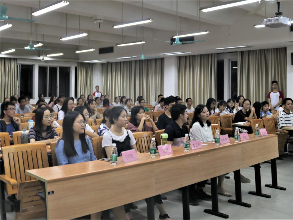 最后,关诗敏用自身一年从新生成长起来的经验,为同学们分享了关于绩点、综测加分等学术方面的具体细则,并就出国、实践经验发表了个人的见解,她还指出了礼貌与态度的必要性。