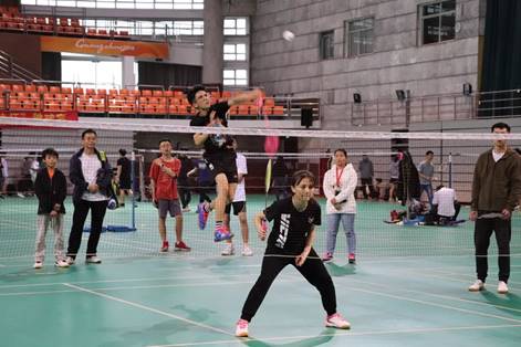比赛正式开始,裁判员就位,选手们迅速进入状态,球场内羽毛球和球拍碰撞的声音此起彼伏,力度之大,力量之稳,不禁让人感叹选手深厚的“内功”。且从一号场的比赛说起:两位选手分别身穿黑色和白色赛服。黑衣选手一记漂亮的发球,在空中划过一道完美的弧线;白衣选手眼疾手快,稳稳地接住球并回扣;对方球十分迅猛,但黑衣选手面不改色,身体随着球位置的变化进行快速的走位,“砰”的一声,黑衣选手实现了反杀;白衣选手来不及反应,球已经稳稳落地。观众们如梦初醒,这才发现仅仅是开局第一球而已,比赛的精彩,仿佛可以定格时间。