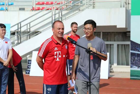 2018级学生张均为FC拜仁青训队主教ANTONIO VATANY提供口译服务