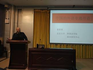 姜景奎教授用生动幽默的语言,首先阐释了何谓外语非通用语,随即介绍了中国外语非通用语的教育历程:古至张骞是中国官方第一个学习非通用语的人,现至全国共有533个非通用语种专业点。