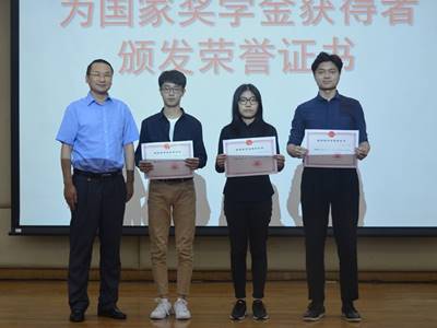 李江为国家奖学金获得者代表颁奖
