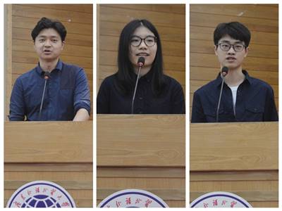 陈月生同学因为参加十佳青年答辩未能出席分享会,但她通过视频给同学们讲述了自己大学期间的心路历程。她提及了大学的兼职和实习经历。她觉得自己最希望分享的东西,就是坚持。她说,“每个人的生活都把握在自己的手中,如果找到了目标,就应该一往无前地为之努力。”