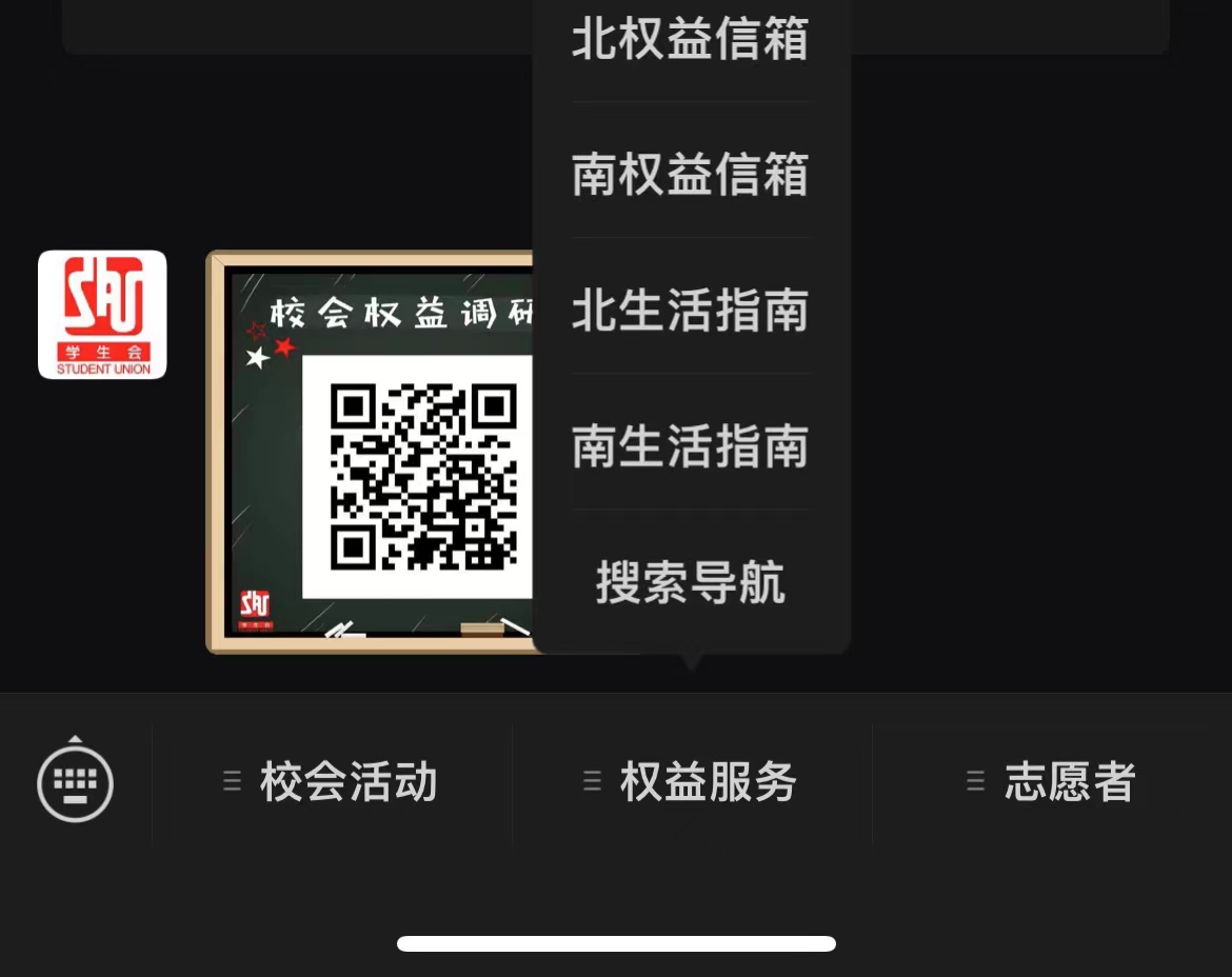 权益信箱,等你来信(权益服务类) 在本支部的公众号菜单栏中,设置了“权益信箱”固定栏目,同学们有任何权益相关的问题,都可以随时投递到信箱中,工作人员会定期整理权益信箱,并对各种权益问题进行反馈,用推送等形式呈现出来。除此之外,本支部也会通过其他问卷以及及学校生活交流社群等为同学们提供发言的渠道,并同样回应他们的诉求。2021-2022学年度本支部累计处理问题反馈上千条,帮助同学们解决大量权益诉求。