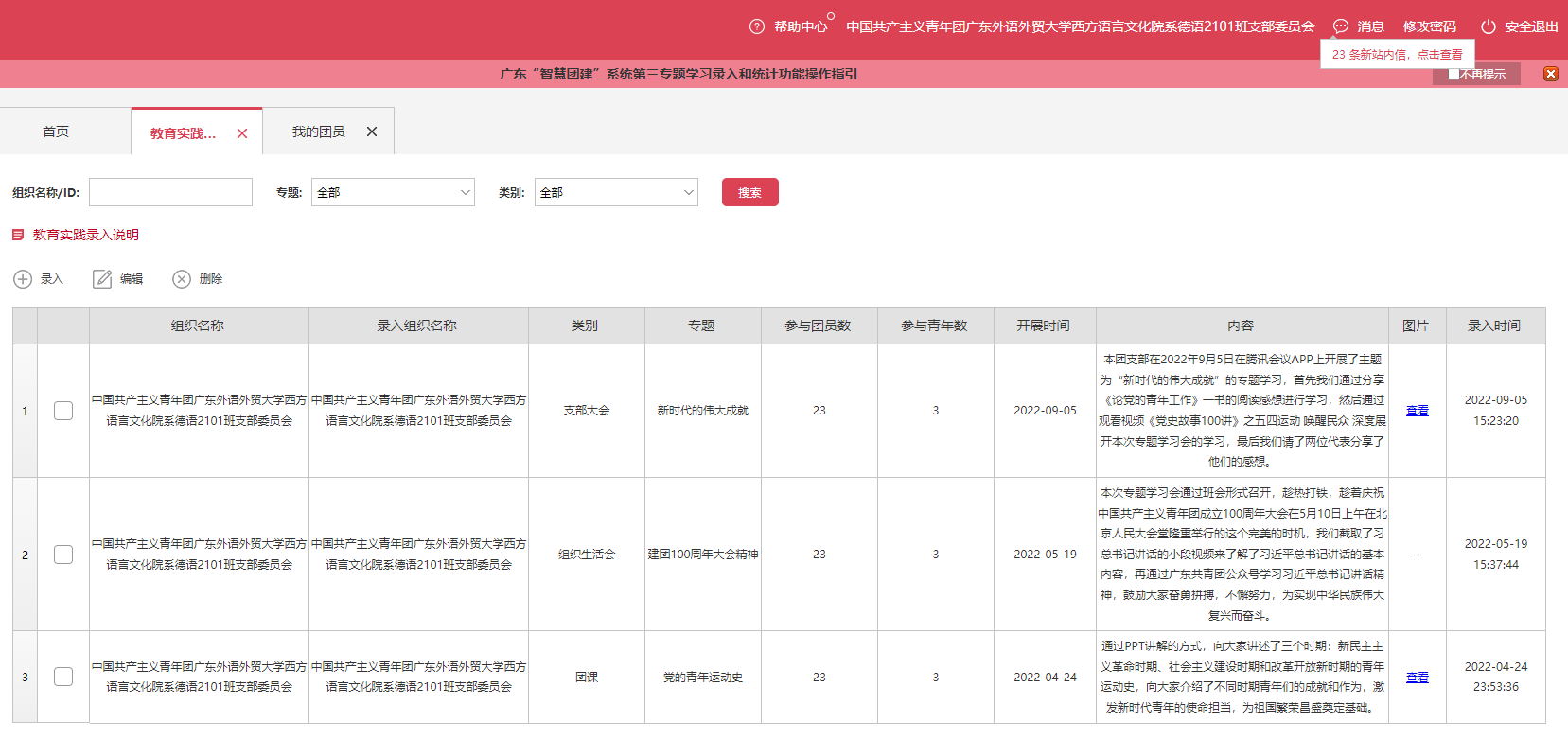 西方语言文化学院德语2101班团支部于2021年9月成立,团支部团员共有23名,青年群众3名。团支部内所有团员均注册成为志愿者。团支部内团干部4名,团支部班底良好,积极组织策划各项团内工作,如:一学期一次的团日活动,一学年一次的微电影大赛和红歌会,平时的各项志愿工作等等。团支部内青年大学习完成度达到100%、每月团费缴纳及时,无欠费现象。