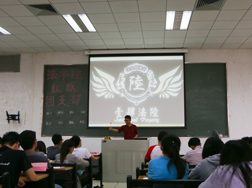 本网讯 4月9日下午,法学院14级红旗团支部评比大会在教学楼G207进行。在主题“与信仰对话”的指引下,14级各团支部依次上台展示本班在过往近一年内所取得的成就,争当具有模范带头作用的“红旗团支部”。