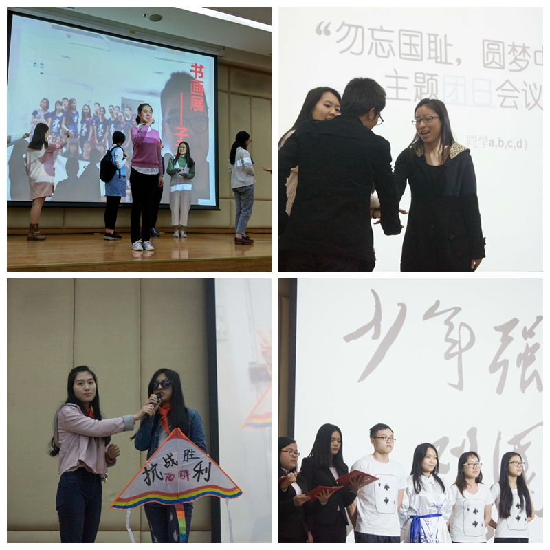 20个团支部在展示过程中无不让观众充分感受到了主题团日活动开展的成效与魅力。其中,中文1503团支部紧扣团日活动主题,开展了如演讲比赛、主题分享会、辩论赛、书画展和宿舍团日投票评比等一系列活动,演绎出独特的精彩。印地语1401团支部则通过组织开展班级内的放风筝活动,让同学们在手绘风筝上写下自己对团日活动的感想,并邀请东语学院学生用不同语言念出团日活动主题“勿忘国耻,振兴中华”的新颖方式,赢得评委赞赏。