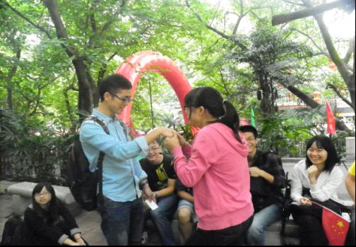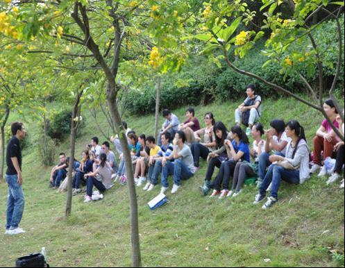 第三部分: 白云山户外素质拓展。 建活泼班级,明社会责任。户外游览本身能让人赏心悦目,心旷神怡,团体出游更能增进友谊,陶冶情操。 2011年10月29日,11级一班法硕研究生在班委、团委的组织下,畅游白云山。在紧张的学习中,参加户外数字拓展,让同学们身心得到极大放松的同时,也促进班级同学之间交流,营造积极、活泼、向上的班级氛围。