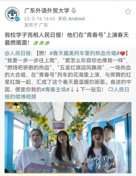 广外学子参加人民日报和共青团中央共同开展的“我的青春主场“活动快闪视频录制