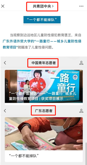共青团中央、中国青年志愿者、广东志愿者官方微信公众号报道我校优秀项目